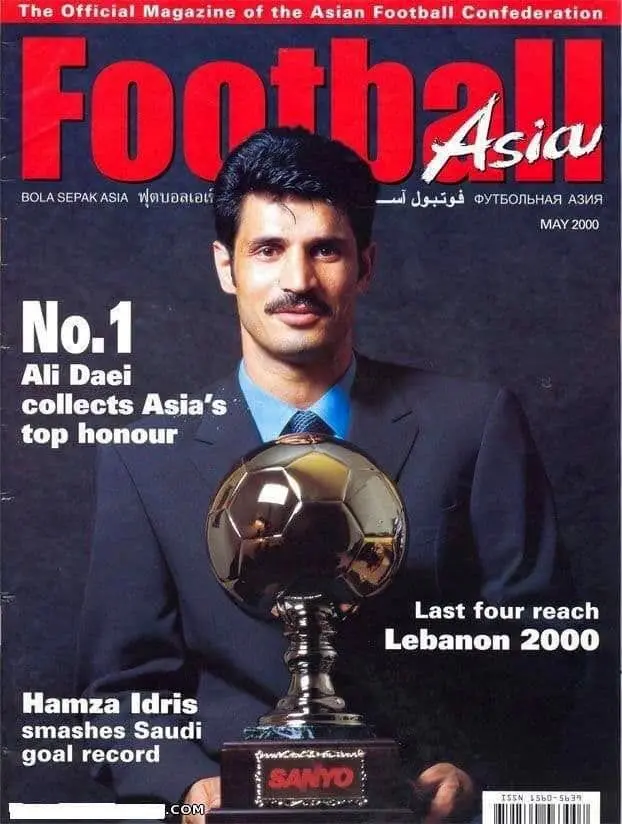 در تصویر منتشر شده مجله منتسب به کنفدراسیون فوتبال آسیا که 8هشت سالی به صورت مرتب منتشر شد و بعدها تغییر شکل داد و در این روزهای اینترنتی، همچنان به صورت متناوب به مخاطبان خود ارائه می گردد ، علی دایی که مرد سال آسیادر سال 1999میلادی شده بود دیده می شود . دایی در آن سالها عضو هرتابرلین آلمان بود و هیده توشی ناکاتا معروف از ژاپن بعد از او به عنوان نفر دوم برگزیده شد. ناکاتا در سال 1998موفق شده بود عنوان مرد سال آسیا را به نام خود بزند.