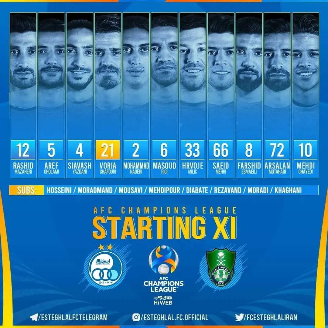به گزارش منیبان،استقلال ایران و الاهلی عربستان در اولین بازی دور گروهی به مصاف هم می روند. ترکیب دو تیم به شرح زیر است: