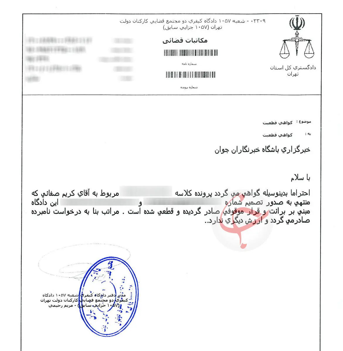 امروز دادگاه شعبه 1057 دادگاه کیفری 2 ویژه رسیدگی به جرایم کارکنان دولت رای برائت وی را صادر کرد.