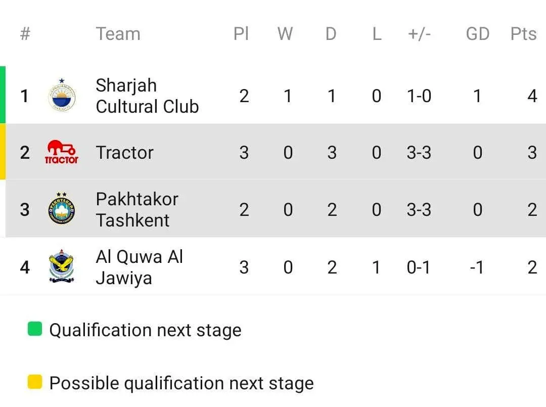 تراکتور مقابل نیروی هوایی هم نتوانست گلی را به ثمر برساند تا از 9 امتیاز ممکن تنها 3 امتیاز را کسب کرده باشد. با توجه به نتایج رقم خورده در گروه، تراکتور خیلی از رقبایش عقب نمانده و در بازی های بعدی باید از همین فرصت استفاده کند.