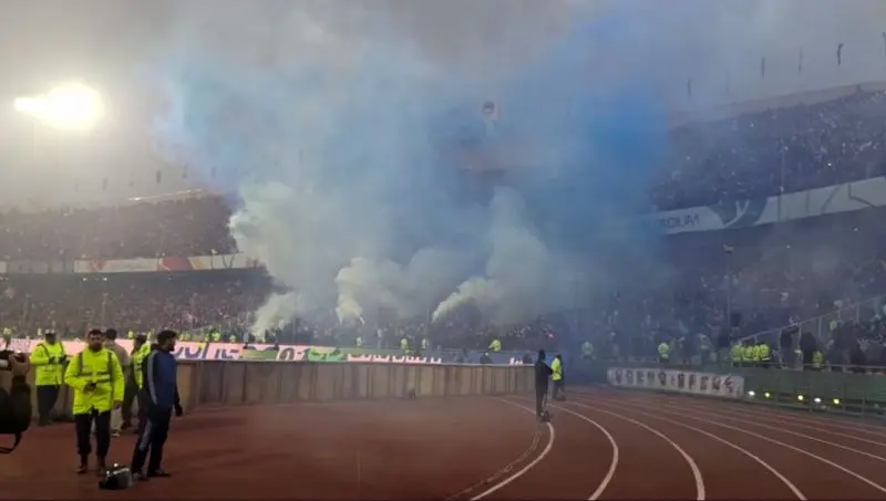 بازی استقلال و پرسپولیس با دود شدید ناشی از آتش بازی در ورزشگاه آزادی شروع شد.