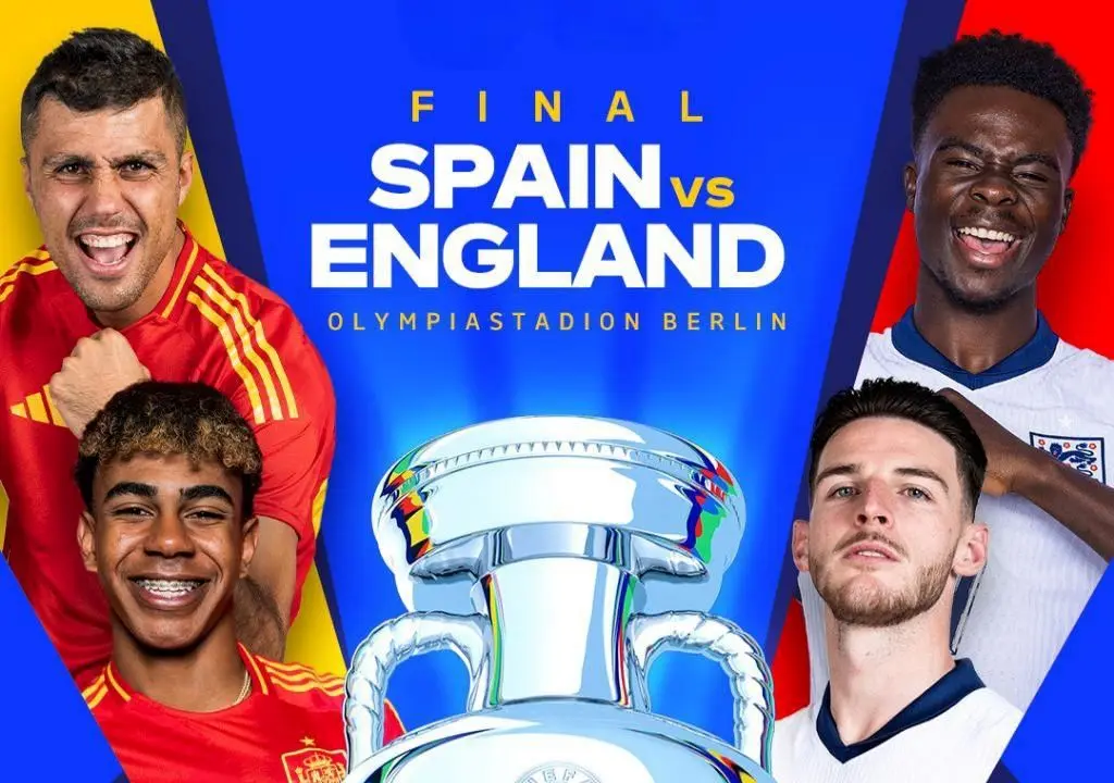 به گزارش منیبان، تیمهای اسپانیا و انگلیس ساعت ۲۲:۳۰ یکشنبه ۲۴ تیر در ورزشگاه المپیک برلین آلمان برای کسب عنوان قهرمانی به مصاف هم میروند.