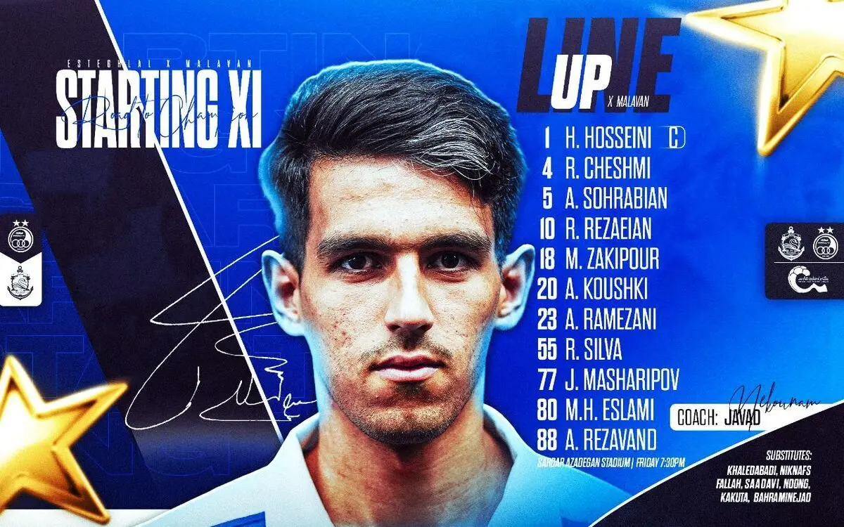 جواد نکونام برای این دیدار از نفرات زیر در ترکیب اصلی استقلال استفاده کرده است: