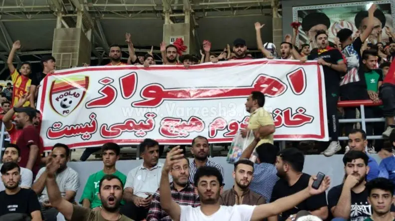 این هواداران با بنری جالب که لوگو فولاد خوزستان روی آن نقش بسته بود وارد ورزشگاه شدند و روی آن نوشته شده بود " اهواز خانه دوم هیچ تیمی نیست"