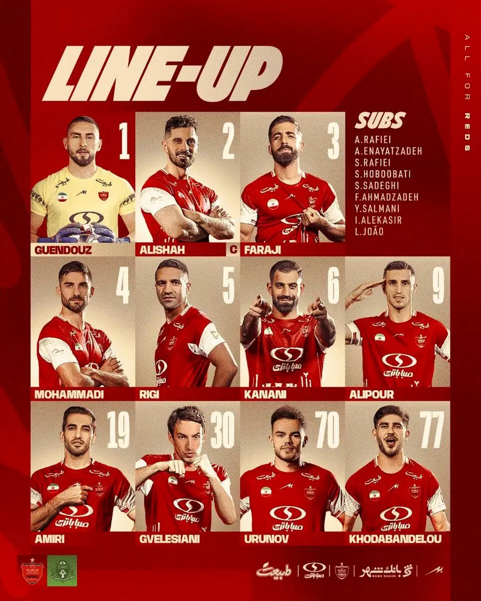 گاریدو برای این دیدار از نفرات زیر در ترکیب اصلی پرسپولیس استفاده کرده است: