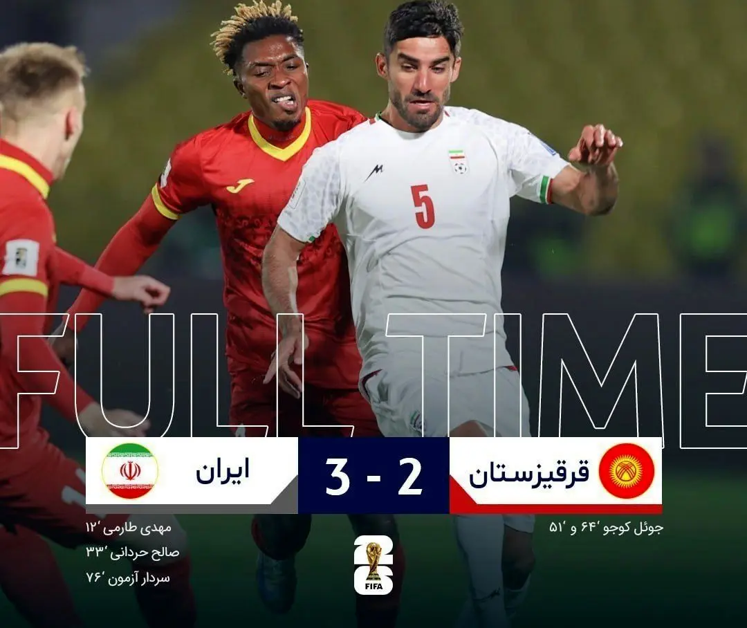 تیم ملی فوتبال ایران در رقابت های انتخابی جام جهانی ۲۰۲۶ به مصاف قرقیزستان رفت و با نتیجه ۳-۲ پیروز شد.