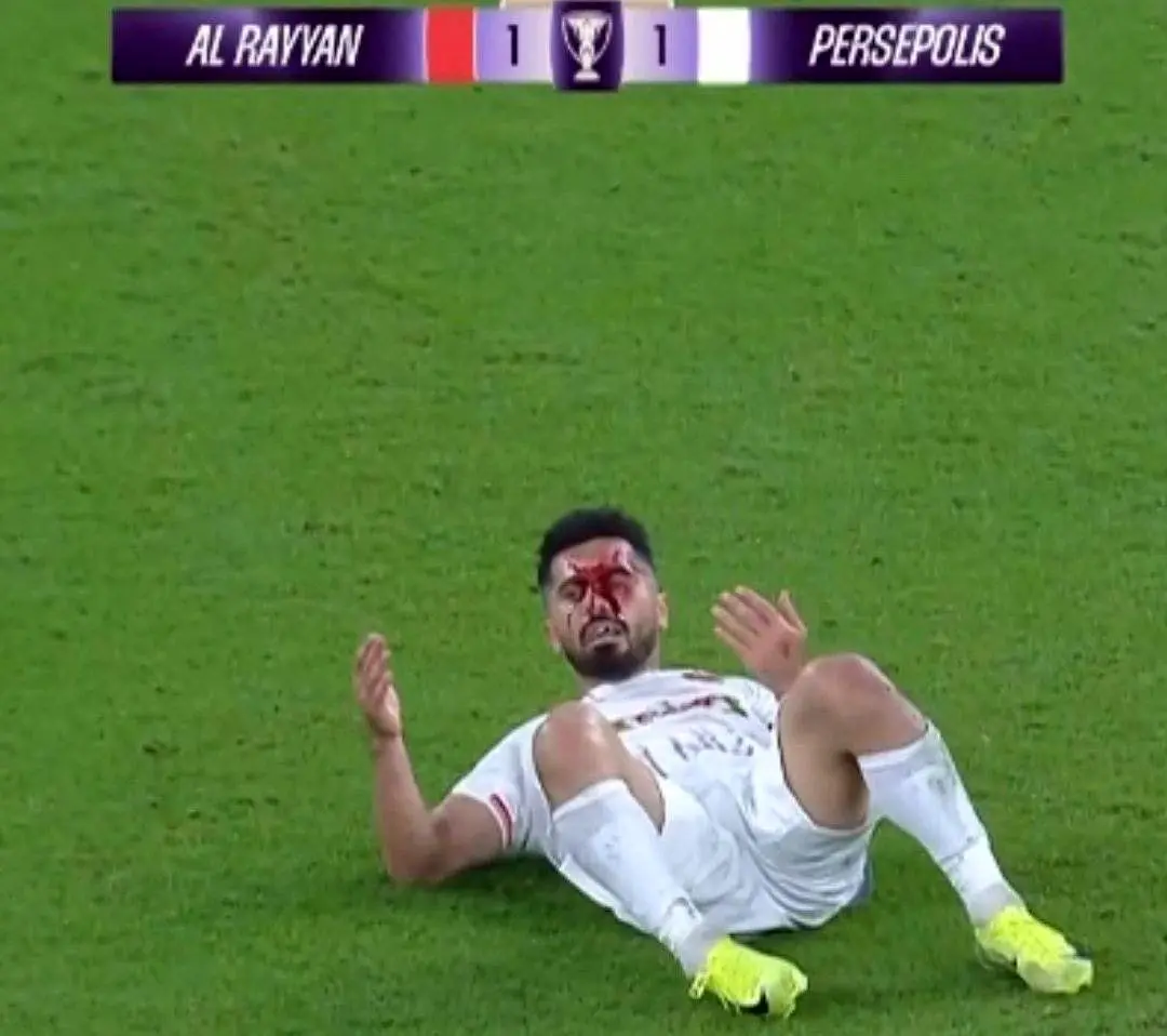 در دقیقه 87 صورت کاپیتان پرسپولیس در برخورد با بازیکن الریان پر از خون شد