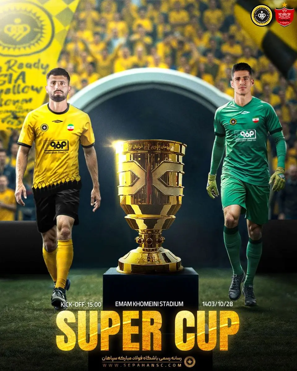 سپاهانی‌ها به‌عنوان قهرمان جام حذفی فصل گذشته پا به این رقابت گذاشتند و امیدوارند برای اولین‌بار قهرمان سوپرجام ایران شوند. پوستر باشگاه سپاهان را برای دیدار فردا مشاهده می‌کنید.