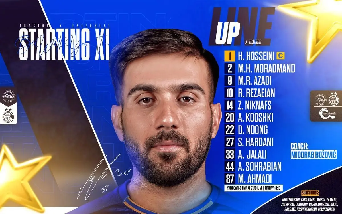 ترکیب اصلی استقلال مقابل تراکتور اعلام شد.