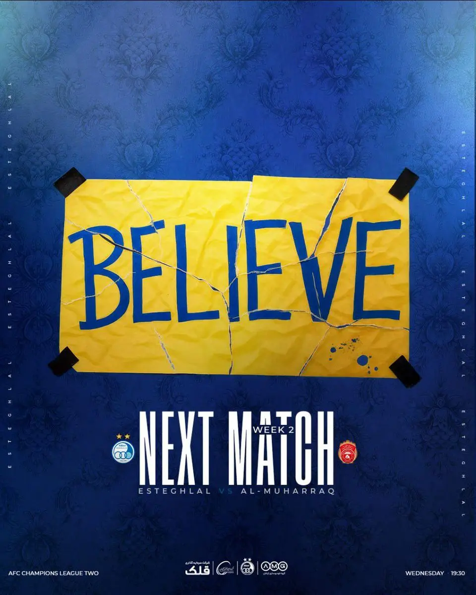 این پوستر با الهام از سریال محبوب «تد لاسو» طراحی شده و شعار «باور» در آن بهعنوان محور اصلی قرار گرفته است. استقلالیها امیدوارند با تکیه بر همین روحیه، در دیدار حساس پیشرو به پیروزی دست پیدا کنند.