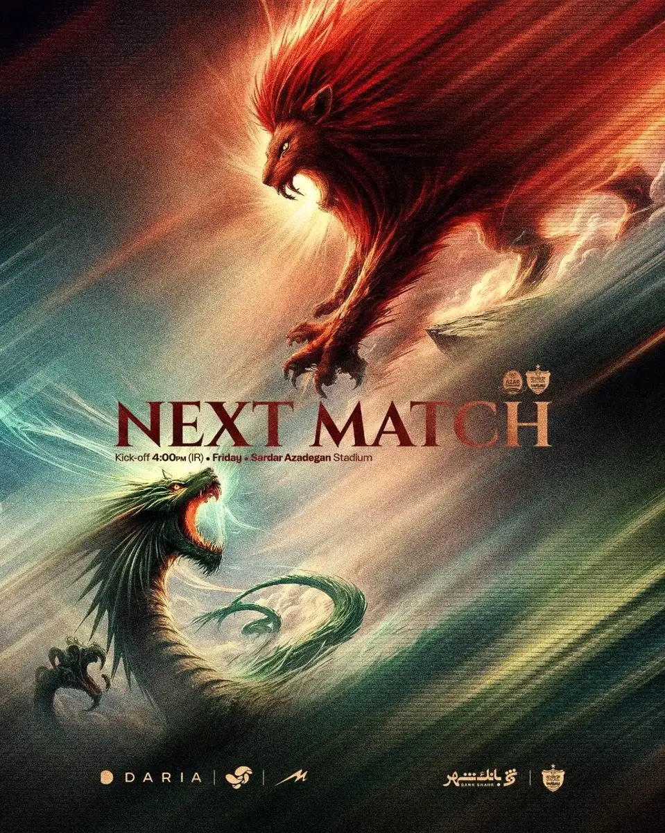اما چند ساعت بعد، شمس‌آذر قزوین پاسخی خلاقانه و جالب منتشر کرد. پوستر این باشگاه نه‌تنها از همان دو نماد (شیر و اژدها) الهام گرفته بود، بلکه هویت محلی را هم به زیبایی در خود جای داده بود. در این پوستر، یک شیرمقابل اژدهای غول‌پیکر در میان آب‌انبار سردار کوچک قزوین، یکی از بناهای تاریخی محله قلملاق ایستاده است. در نهایت باید دید کدام تیم فاتح این دیدار حساس خواهد بود.