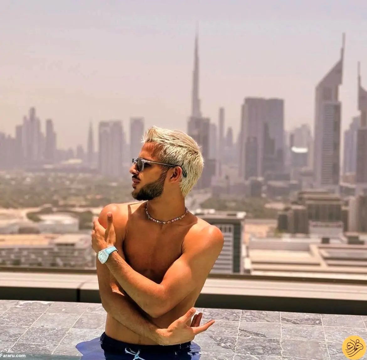 مهدی قایدی با پیرژامه در جشن تولد لاکچری در دوبی!/ عکس