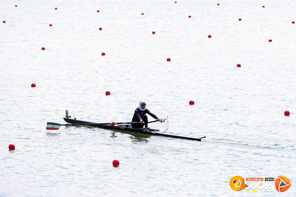 نازنین ملایی به عنوان اولین نماینده ایران در بازی های المپیک توکیو در مرحله گروهی قایقرانی رویینگ تک نفره زنان پارو زد و در گروه خود سوم شد. ملایی با پنج پاروزن دیگر از کشورهای بلاروس، آمریکا، پاراگوئه، سودان و نیجریه رقابت داشت که در پایان زمان 7 دقیقه و 59 ثانیه را ثبت و در رده سوم قرار گرفت. قایقهای آمریکا، بلاروس و ایران به ترتیب اول تا سوم شدند و به یک چهارم نهایی رفتند. با این نتیجه ملایی در ادامه رقابتش باید سوم مرداد به مصاف حریفانش برود.
