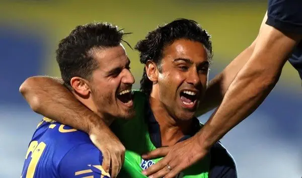 تصاویر شادی غفوری و مجیدی پس از گل دوم در حالیکه چند دقیقه تا پایان نیمه دوم باقی مانده بود و رویای فینالیست شدن تیم قلعه نویی را ناکام گذاشت، مشاهده میکنید: