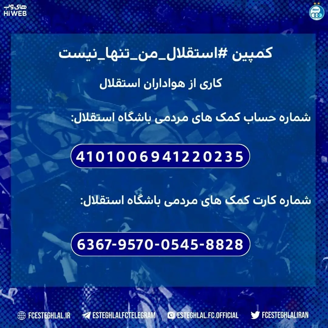 به گزارش منیبان، هواداران استقلال به کمپینی پیوستند که در آن قرار است با واریز کردن مبلغی پول به حساب باشگاه، برای رفع مشکلات مالی تیم محبوبشان کمک کنند.