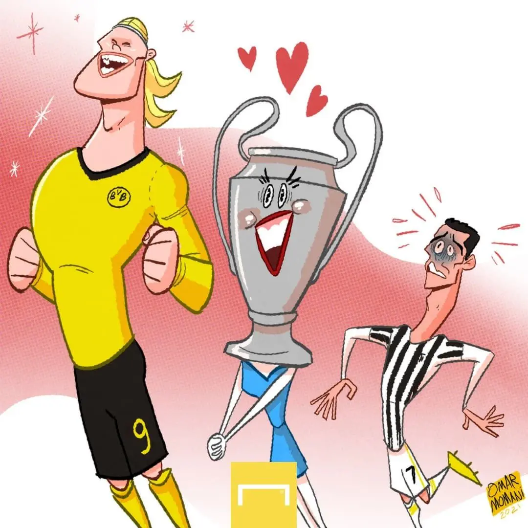 به گزارش منیبان، شب گذشته، یوونتوس و پورتو در مرحله یک هشتم نهایی رقابت های لیگ قهرمانان اروپا به مصاف هم رفتند که این دیدار با عملکرد نه چندان خوب کریستیانو رونالدو و با نتیجه 3-2 به سود یوونتوس و صعود پورتو به دور بعدی این رقابت ها به پایان رسید. در طرفی دیگر،  دورتموند  و سویا نیز به مصاف هم رفتند که این دیدار با تساوی 2-2 دو تیم و صعود زنبورها به دور بعدی به پایان رسید.  ارلینگ هالند  در مجموع دو دیدار رفت و برگشت دورتموند و سویا 4 گل زد و 1 پاس گل داد تا روی تمام گل ها تاثیر گذاشته باشد. همین موضوع سوژه جدید عمر مومنی، کاریکاتوریست سایت گل شده است.