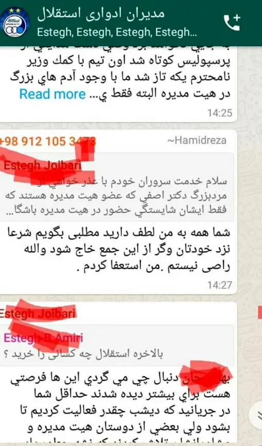 در تصویر بالا مشاهده میکنید که آصفی پس از یک بحث با مدیران استقلال استعفای خود را اعلام  کرده و ظاهرا اختلافش با مدیران بر سر نقل و انتقالات باشگاه بوده است. نکته جالب این است که خود آصفی منکر استعفایش است و ظاهرا این اعلام استعفا یک قهر واتساپی بوده است!